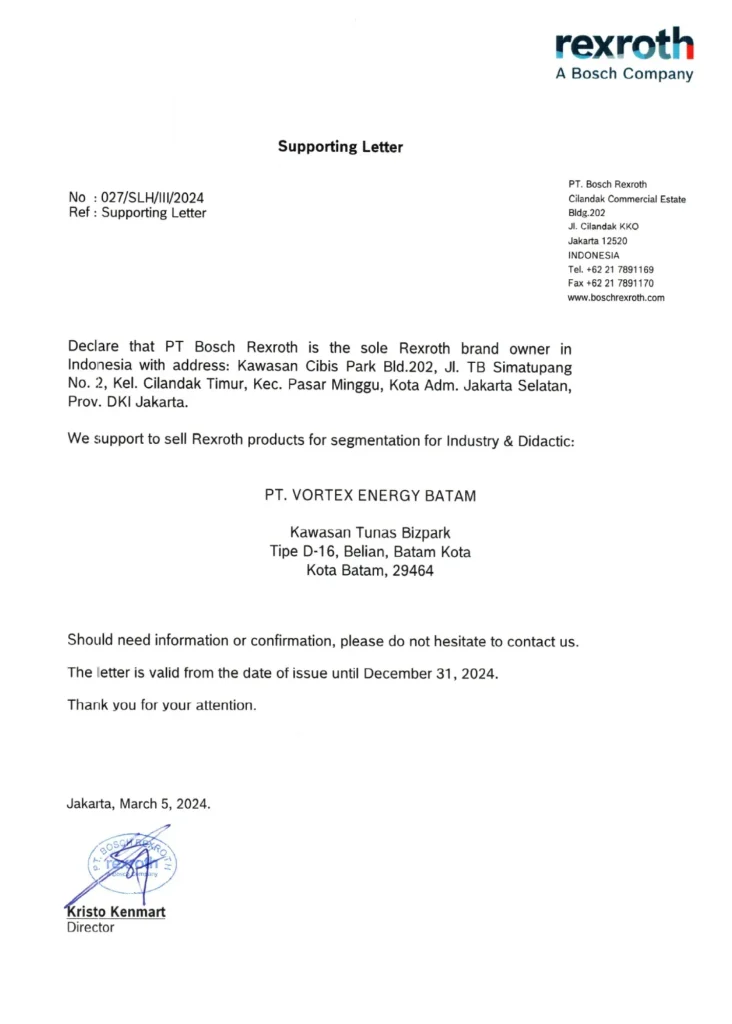 AUTHORIZED REXROTH CERTIFICATE