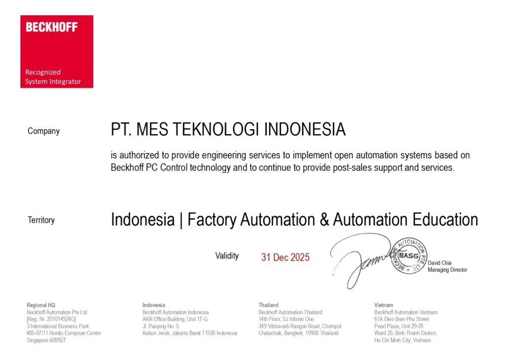 AUTHORIZED OF BECKHOFF CERTIFICATE