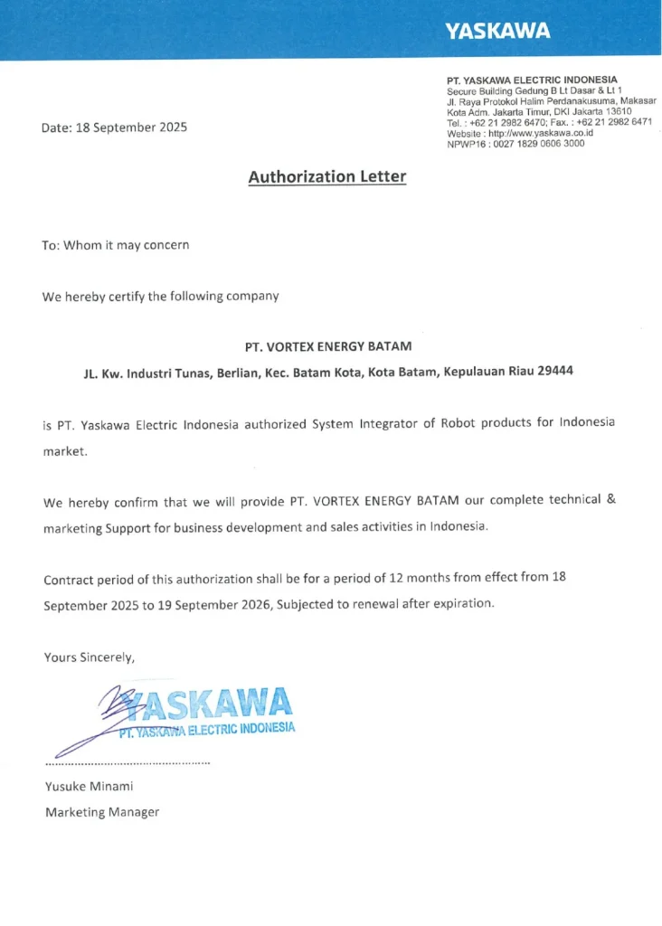 INDONESIA AUTHORIZED SYSTEM INTEGRATOR OF YASKAWA ROBOTIC